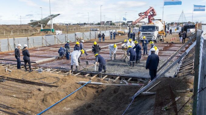 El Municipio de Río Grande avanza con la construcción del edificio permanente de la Carpa de la Dignidad, una obra emblemática para la memoria, la soberanía y el trabajo permanente junto a los Veteranos de la Guerra de Malvinas. En los últimos días se concretó una instancia fundamental del proyecto con el inicio del hormigonado de la estructura, lo cual permitirá avanzar hacia la colocación de la estructura metálica del edificio.
